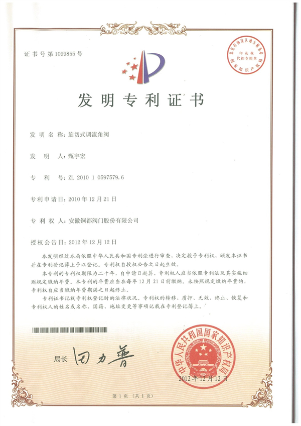 發(fā)明專利:旋切式調(diào)流角閥